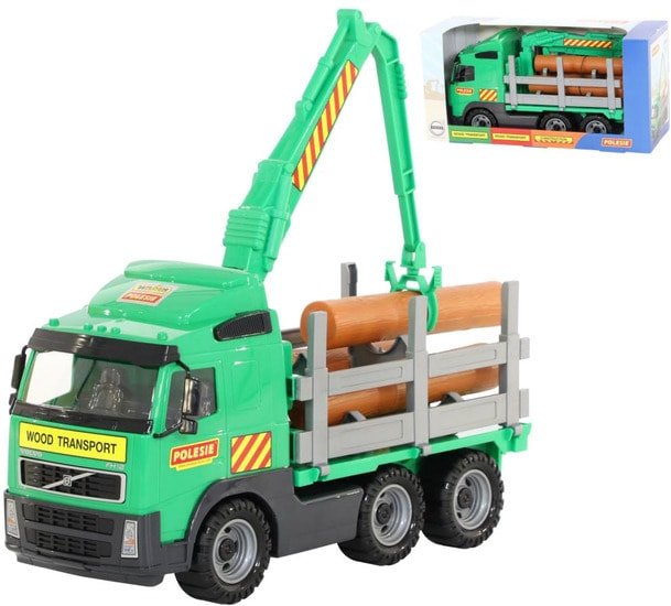 | Информация | Замечательный подарочный вариант лесовоза. Манипулятором ребёнку интересно будет разгружать и загружать брёвна. Разнообразить игру можно сняв борта автомобиля, крепления для брёвен, и превратить лесовоз в автомобиль-платформу. |
