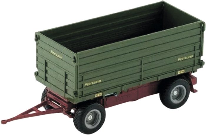 | Информация | Игрушечная модель прицепа Fortuna для игрушечных машинок. Кузов опрокидывается на левый бок. Левый борт прицепа открывается. Передняя ось поворачивается. Колёса вращаются, можно катать. |