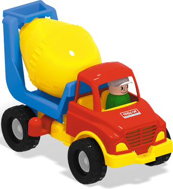| Информация | Малышам нравится ползать и катать машинки, возить их за собой на веревочке, нагружать их песком, скатывать с горки. Особенно все дети радуются, когда в их коллекции машинок появляется грузовик бетономешалка. Поднимающаяся бочка бетономешалки приводит их в восторг. С помощью бетономешалки можно перевозить грузы и даже везти в нем свои игрушки на прогулку. |