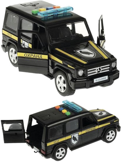| Информация | Игрушечная машинка Mercedes-benz G-Class Охрана выполнена из высококачественных материалов. Длина - 22 см. У машинки есть инерционный механизм (поставьте машинку на ровную поверхность, потяните назад, отпустите - и она тут же поедет вперёд). Благодаря открывающимся дверям, которые делают машинку максимально похожей на настоящую, всегда можно заглянуть к ней внутрь, чтобы убедиться - каждая деталь отлично проработана. Реалистичный дизайн данной модели плюс световые и звуковые эффекты позволят с головой погрузиться в игру, придумывая новые интересные сюжеты. |