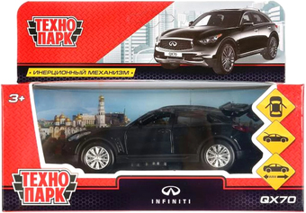 | Информация | Чёрная машинка «INFINITI QX70» ТМ «Технопарк» – сразу 3 в 1: - коллекционная металлическая модель, в точности повторяющая оригинал; - с инерционным механизмом (чуть надавите на модель и потяните её назад – и машинка автоматически устремится вперёд); - с открывающимися багажником и боковыми дверями. |