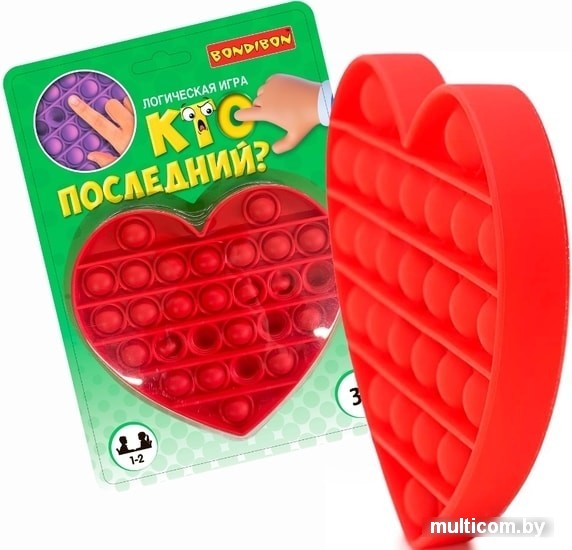 | Информация | Не просто POP IT, а логическая игра! Используем максимально все тренды, чтобы детям было интересно учиться. Логическая игра «КТО ПОСЛЕДНИЙ?» от Bondibon. Если Ваш ребенок – поклонник популярной игрушки Поп Ит, то ему будет очень интересно играть в нее вместе с другом. А родителям будет важно, чтобы игра была не просто развлечением, но и помогала развитию ребенка в целом. У игры простые правила, но не простое решение. Игроки по очереди выбирают ряд и нажимают на любое количество пузырьков, но только одним движением. Противник выбирает любой ряд с непрессованными пузырями и нажимает на один или несколько пузырей в ряду. Игрок, которому достается последний пузырь – проигрывает. Платформа переворачивается, и игра продолжается. Всего 5 раундов. Выигрывает тот, кто одержит больше всего побед |