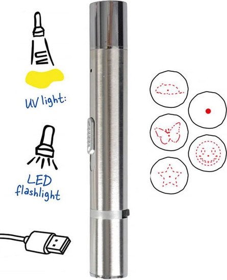 | Информация | Светодиодная лазерная указка подарит вашей кошке много часов веселья. Ваша кошка получит кучу удовольствия, гоняясь за красной точкой. Часто и собаки не прочь поразвлечься с такой веселой игрушкой.Предусмотрено пять различных изображений, за которыми может охотиться ваш зверь. Указка имеет светодиодный светящийся LED луч и УФ-свечение, а также шнурок, который можно повесить на руку и тогда игрушка не потеряется во время прогулки. Заряжается через USB разъем всего за 15 минут. Эта игрушка будет стимулировать вашу кошку играть с вами, а вам даже не придется вставать с дивана.Некоторые кошки легко набирают вес - эта игрушка поможет вашей кошке оставаться здоровой и поддерживать отличную спортивную форму. |