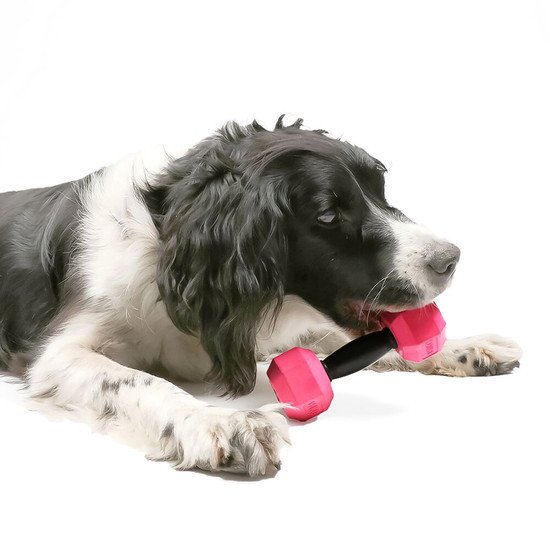 | Информация | Гантель идеально подходит для спортивного дня! Будет казаться, что ваша собака тренируется, но вы можете тайно спрятать специальных отсеках гантельки самые любимые собакой лакомства. Гантель изготовлена из прочной и упругой натуральной резины, и имеет твердую нейлоновую ручку, за которую очень удобно хвататься зубами. |