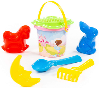 | Информация | Цвет товара зависит от партии поставки. Ведро малое с наклейкой, ситечко-цветок, совок №2, грабельки №2, формочки (заяц + лошадка + месяц). |