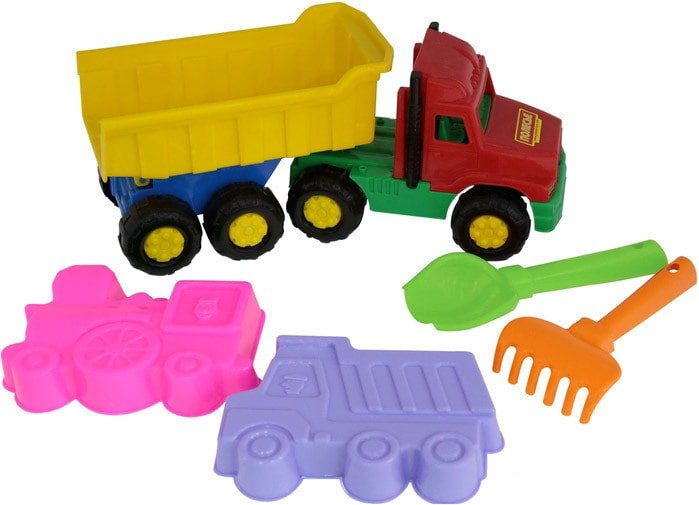 | Информация | Автомобиль-самосвал "Фаворит" имеет оптимальный размер для игры как дома, так и на улице. В кузове карьерного типа удобно возить, насыпать и ссыпать песок. |