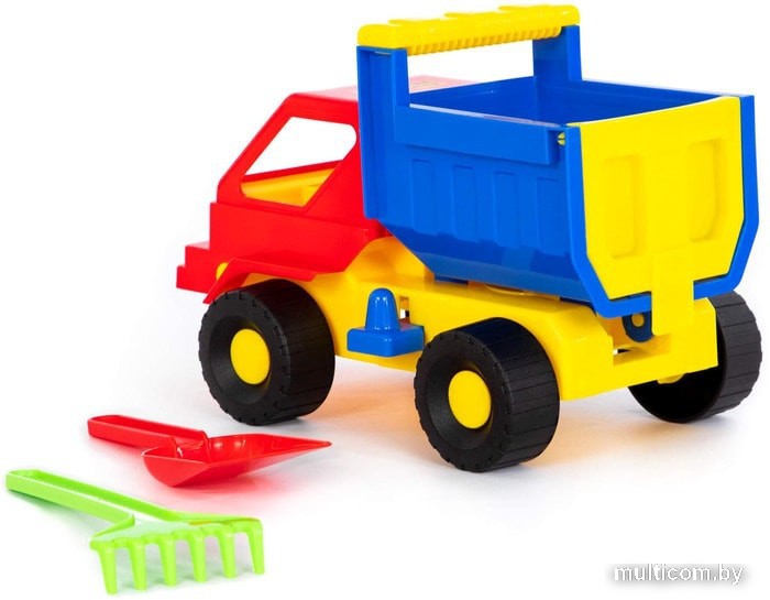 Набор игрушек для песочницы Полесье Самосвал Кузя с лопаткой и грабельками 1276