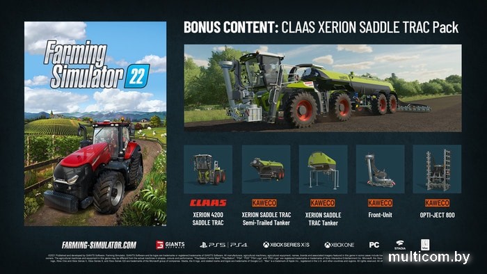 | Информация | Сыграйте за современного фермера! Сельское хозяйство, животноводство и лесоводство предлагают множество фермерских занятий, а ещё вас ждут испытания четырёх сезонов: особенно сложны зимние. Обустройте ферму творчески, расширьте производство с помощью его цепочек и создайте целую сельскохозяйственную империю! Фермой можно управлять даже вместе с друзьями благодаря кроссплатформенной многопользовательской игре. Выберите пышный виноградник или оливковую рощу на Средиземноморском юге Франции; просторные поля пшеницы, кукурузы, картофеля и хлопка на Среднем Западе США или оживлённую животноводческую ферму в холмистых европейских Альпах. Для возделывания земли к вашим услугам более 400 машин и инструментов от более 100 настоящих сельскохозяйственных марок: Case IH, CLAAS, Fendt, John Deere, Massey Ferguson, New Holland, Valtra и прочих. В «Симуляторе фермы 22» как никогда много новых игровых функций, материалов и свободы, например, такие способы земледелия как мульчирование и собирание камней, улучшенный режим строительства с теплицами и ульями, а ещё новый редактор персонажа, где можно создать уникального фермера. Дополнить игру можно самыми разными бесплатными модификациями, сделанными игроками и протестированными разработчиком, GIANTS Software. Начните работать на ферме уже сегодня и станьте преуспевающим фермером! |