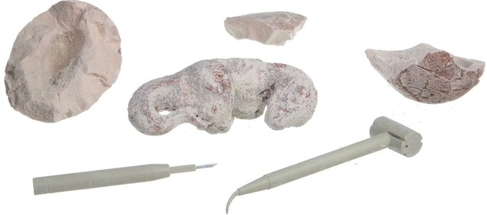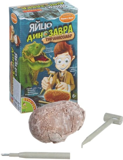 | Состав набора | В состав набора входят картонная подставка, блок для раскопок яйцо из гипса, молоток, зубило, кисточка, губка, инструкция. |