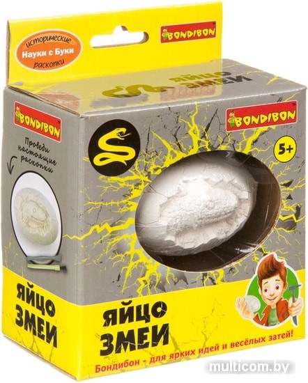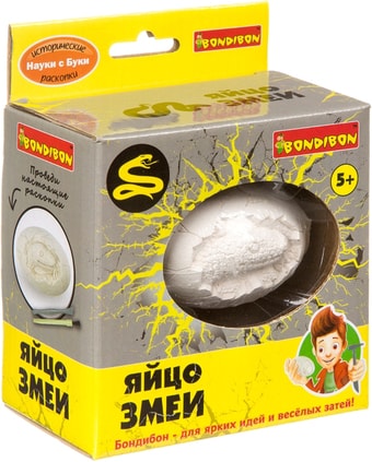 | Информация | Проведи настоящие раскопки и посмотри, что находится внутри! В окаменевшем яйце - змея. Но не простая, а светящаяся! Добудь ее с помощью специальных инструментов для раскопок из набора. Инструкция по проведению раскопок находится на оборотной стороне упаковки. Bondibon - для ярких идей и веселых затей! |