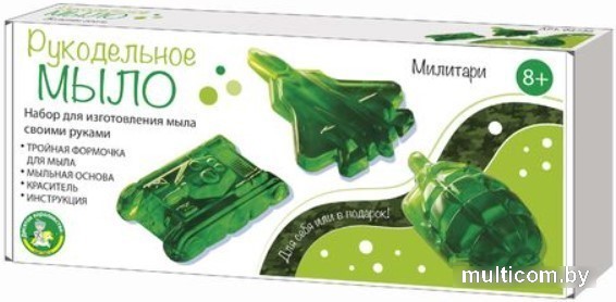 | Информация | Набор для изготовления мыла своими руками для детей «Милитари» входит в серию наборов «Рукодельное мыло». С его помощью можно создать сразу 3 ярких кусочка фигурного мыла в виде самолета, гранаты и танка. Набор для изготовления мыла своими руками развивает внимание, усидчивость, творческие способности и мелкую моторику ребёнка. |