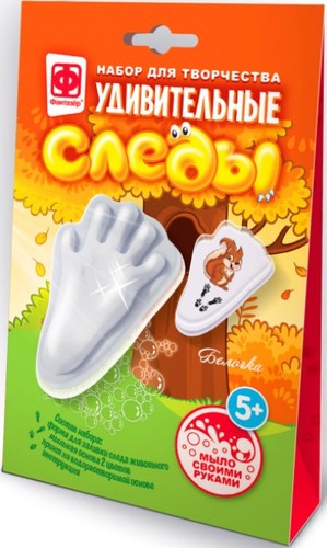 | Информация | Следы оставляют все: и люди, и животные, маленькие и большие. А вот разобрать, где чей след — это задача под силу только любознательному и внимательному исследователю! С набором «Удивительные следы» процесс изучения следов будет необычным, увлекательным, а главное чистым экспериментом, потому что следы животных мы будем делать из мыла, — в наборе для этого уже все есть. Мыло получается в форме 3D следа с одной стороны и картинкой животного, которому принадлежит след, с другой. Такое необычное мыло интересно подержать в руках, рассмотреть и легко запомнить, к тому же внутри вы найдете интересные факты о животных! А если у Вас наберется целая коллекция, попробуйте вместе с ребенком угадывать, кому какой след принадлежит. Замечательный подарок для маленьких следопытов! |