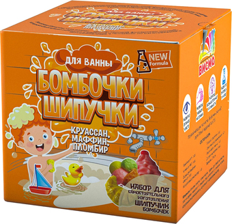 | Информация | С набором «Бомбочки-шипучки. Круассан, маффин, пломбир» вы сможете сделать ароматные и разноцветные бомбочки для ванны. Тогда процесс купания станет излюбленным и увлекательным для ребенка. |
