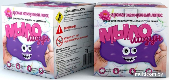 | Состав набора | Жидкая мыльная основа, картофельный крахмал, натуральный краситель, глицерин, натуральный ароматизатор, миска и палочка для замешивания, инструкция |