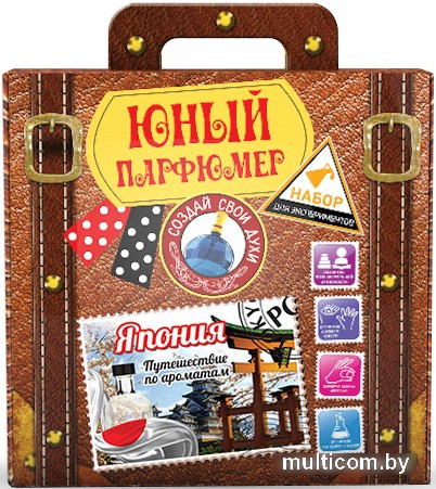 | Информация | Оригинальный набор идеально подойдет для творческого, любознательного ребенка. Картонный чемоданчик таит в себе невероятные возможности и уникальный опыт. Он раскроет ребенку все тайны создания ароматов и познакомит с особенностями запахов Японии. |