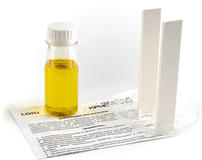 Состав набораХимический реактив с красителем, поддон для выращивания кристаллов, картонная основа, подроная инструкция