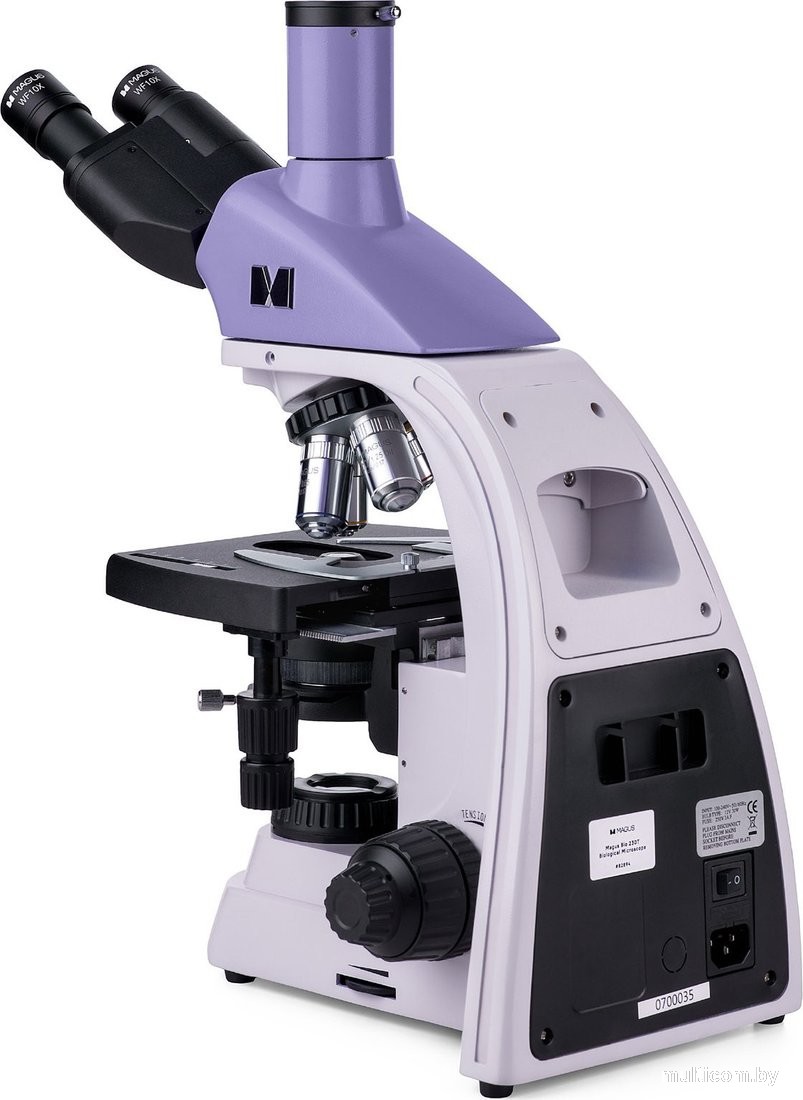 | Информация | - Микроскоп идеально подходит для изучения прозрачных и полупрозрачных биологических образцов в проходящем свете. С возможностью установки дополнительных компонентов, он поддерживает методы темного поля, фазового контраста и поляризации. Отличный выбор для лабораторной работы, научных исследований и обучения. - Цифровая камера MAGUS CDF10 предназначена для работы в светлом и темном поле. Она обладает низким уровнем шума и высокой светочувствительностью. С сенсором 2 Мпикс, камера формирует изображение в разрешении Full HD (1920x1080 пикс) при использовании объективов 40х, 60х и 100х. Видеозапись ведется с частотой 125 кадров в секунду, обеспечивая плавные переходы и отображение движения в реальном времени. - Тринокулярная визуальная насадка с оптикой, рассчитанной на бесконечность, позволяет пользователю выбирать высоту выноса зрачка и вращать тубусы на 360°. Цифровая камера устанавливается в вертикальный тубус, что обеспечивает удобство работы. - Револьверное устройство на 5 объективов имеет свободное гнездо для установки дополнительного объектива, что расширяет возможности увеличения. Револьвер повернут «от наблюдателя», что позволяет видеть используемый объектив и оставляет пространство над столиком свободным. - Коаксиальные рукоятки грубой и тонкой фокусировки расположены удобно, что позволяет пользователю занимать расслабленную позу во время работы. Настройка фокуса происходит плавно и без усилий. - Предметный столик не имеет выдвижной зубчатой рейки по оси Х, что повышает эргономичность. Механизм с ременной передачей обеспечивает плавное перемещение объекта, а препаратодержатель можно быстро снять для ручного сканирования. - Конденсор Аббе оснащен слотом для установки слайдера темного поля или фазового контраста, что экономит время при переключении методов исследования. - Галогенная лампа излучает теплые тона и легко заменяется. 30-ваттная лампа обеспечивает достаточную яркость для работы на всех объективах. - Микроскоп комплектуется разнообразными аксессуарами, включая окуляры, объективы и устройства для работы по методам темного поля, фазового контраста и поляризации. - Основные особенности микроскопа включают тринокулярную насадку, мощный осветитель, эргономичную конструкцию и широкий выбор совместимых аксессуаров. - Основные характеристики камеры: работа в светлом и темном поле, разрешение 1920x1080 пикс, высокая частота кадров, низкий уровень шума и интерфейс USB 3.0 для быстрой передачи данных. - В комплект входят цифровая камера, штатив с источником света, конденсор Аббе, тринокулярная насадка, несколько объективов и окуляров, а также другие необходимые аксессуары. - Дополнительные аксессуары можно заказать отдельно, включая различные окуляры, объективы и устройства для фазового контраста и поляризации. |