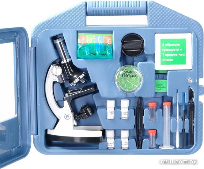 | Состав набора | - Скальпель- Игла- Мешалка- Цилиндр с делениями- Пробирки для сбора- Щипцы- Покровные стекла - 7 шт, чистые стикеры - 7 шт.- Запасная лампа- Чистые предметные стекла- Нож для резки препаратов- Чашка Петри- Субстрат смолы- Краситель эозин- Морская соль- Икра креветок (артемии)- Инкубатор для артемий- Покровные стекла (под коробкой с предметными стеклами) |