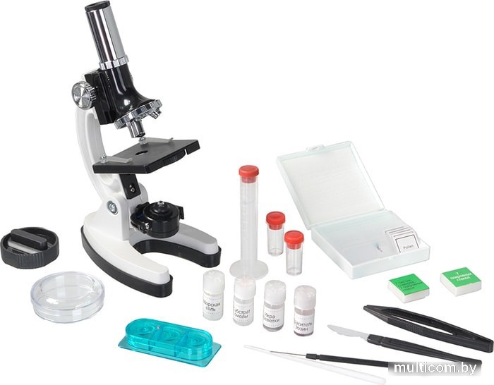 | Информация | Этот микроскоп с увеличением 100х - 400х - 900х не просто подарок для юного биолога. Это реальный прибор, рассчитанный на длительный срок службы и на интенсивную и интересную «эксплуатацию».Микроскоп имеет металлические основание и держатель тубуса, а подвижная часть (тубус с объективами и окуляром) удобно управляется большой рукояткой, которая вращается плавно, с некоторым усилием, без люфтов и мертвого хода.Никакой «хлипкости», присущей пластиковым моделям! Если вы настроились на объект и хотите показать его ребенку (или наоборот), будьте уверены, убирая одну руку с ручки фокусировки, а другую с основания микроскопа (вы его придерживаете), фокусировка не собьется и подстройка не потребуется.Удобная система освещения - зеркало и лампочка (на обратной стороне зеркала, включается автоматически при перевороте зеркала). Четыре фильтра и диафрагмы (кольцо на предметном столике) сделают освещение исследуемого объекта наиболее выигрышным для наблюдений. В комплекте масса принадлежностей. Не только инструментов (включая микротом - специальный нож для резки препаратов), но и инкубатор для опытов и сами препараты. Как выращивать живые микроорганизмы подробно описано в инструкции.Главное - не слишком увлечься опытами самому. Все-таки это игрушка для детей, а у вас есть свои - компьютер, смартфон и другие гаджеты.И последнее. Микроскоп, инструменты, препараты упакованы в жесткий подарочный кейс из двойного пластика. Это важно при переездах на дачу или в гости. И микроскоп лежит в ячейке, и не будет поврежден, и препараты не перепутаются. |