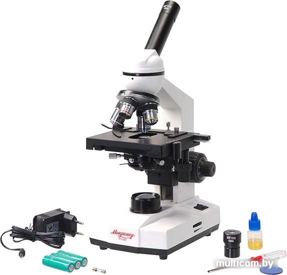 | Состав набора | Микроскоп Микромед Р-1 LED - 1шт.Объектив-ахромат 4х/0,1- 1шт.Объектив-ахромат 10х/0,25 - 1шт.Объектив-ахромат 40х/0,65 - 1шт. Объектив-ахромат 100х/1.25 - 1шт. Окуляр 10х/18 - 1шт.Окуляр 16х/15 - 1шт.Светодиод 0,75 Вт - 1шт.Адаптер для зарядки аккумулятора - 1шт.Чехол - 1шт. Руководство по эксплуатации - 1шт.Иммерсионное масло - 1шт.Синий светофильтр - 1шт. |