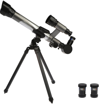 | Информация | Детский телескоп - великолепный подарок для всех маленьких любителей научных открытий! Телескоп на ножках с возможностью 20х, 30х и 40х увеличения предназначен для познавательного развития. С помощью него юный исследователь сможет прикоснуться к тайнам Вселенной, подробно изучить чарующее звёздное небо и многое другое! Диаметр объектива составляет 32 мм, длина фокуса: 170 мм. |