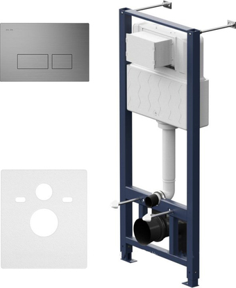 | Информация | Максимально полная комплектация - все необходимые крепления, патрубки, звукоизолирующая прокладка в комплекте. Вертикальные ребра жесткости в конструкции рамы – дополнительная опора в месте давления керамики на стену. Благодаря им инсталляция более универсальная и подходит для унитазов любых размеров, включая унитазы с небольшой контактной поверхностью. Нет необходимости докупать дополнительные аксессуары для монтажа таких унитазов. Благодаря цельному стальному профилю 40*40 мм толщиной 2 мм инсталляция выдерживает нагрузку до 400 кг. Цельный бесшовный бачок из полиэтилена с защитой от конденсации. Комфортное использование благодаря заливному клапану с низким уровнем шума - менее 20 Дб. В комплекте пневматическая двухрежимная клавиша из ABS пластика в цвете черный матовый |