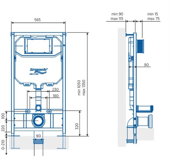 | Отверстия под унитаз | 180 мм, 230 мм |