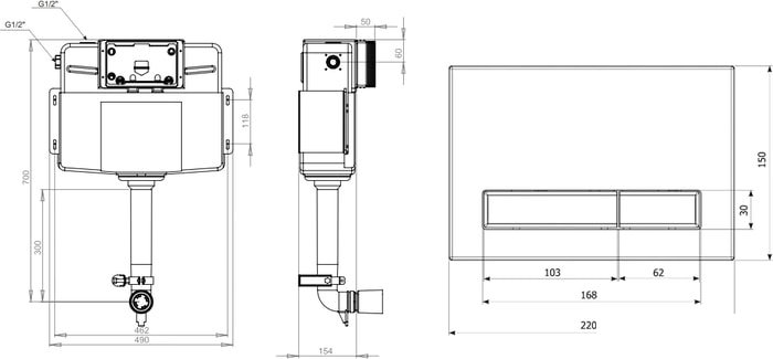 крепление на капитальную стену, двухрежимный слив, механическое управление, бачок в комплекте, 49x70x15.4 см