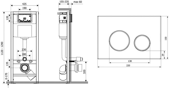 | Режим слива | однорежимный, двухрежимный, трехрежимный, прерываемый |