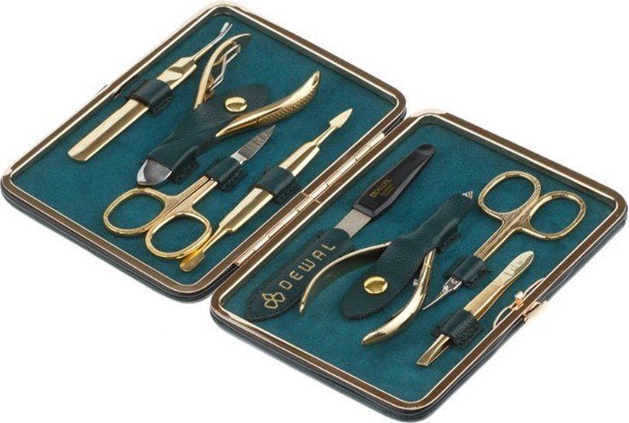 | Комплектация | • ножницы для кутикулы — углеродистая сталь, никелированное покрытие, 9 см. • ножницы для ногтей — углеродистая сталь, никелированное покрытие, 9 см. • кусачки для кутикулы — нержавеющая сталь, никелированное покрытие, 10,5 см. • кусачки для ногтей — нержавеющая сталь, никелированное покрытие, 10,5 см. • удалитель кутикулы — нержавеющая сталь, никелированное покрытие, 11 см. • пилка металлическая — углеродистая сталь, хромированное покрытие, 12,5 см. • пинцет скошенный — нержавеющая сталь, никелированное покрытие, 8 см. • шабер двусторонний — нержавеющая сталь, никелированное покрытие, 12 см. |