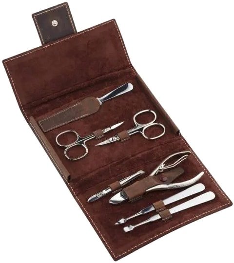 | Комплектация | ножницы для ногтей, ножницы для кутикулы, кусачки для ногтей, шабер-копье, шабер-лопатка, пинцет наклонный, пилка металлическая |