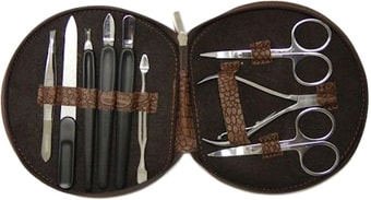 | Комплектация | пилка для ногтей, ножницы для кутикулы, кусачки для кутикулы, ножницы для ногтей, пинцет, триммер для кутикулы, шабер (?2), пушер |