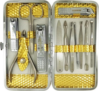 | Комплектация | пилка для ногтей (1 шт), кусачки для кутикулы (1 шт), ножницы для ногтей (1 шт), пинцет (1 шт), книпсер (3 шт), триммер для кутикулы (1 шт), шабер (2 шт), пушер (2 шт) |