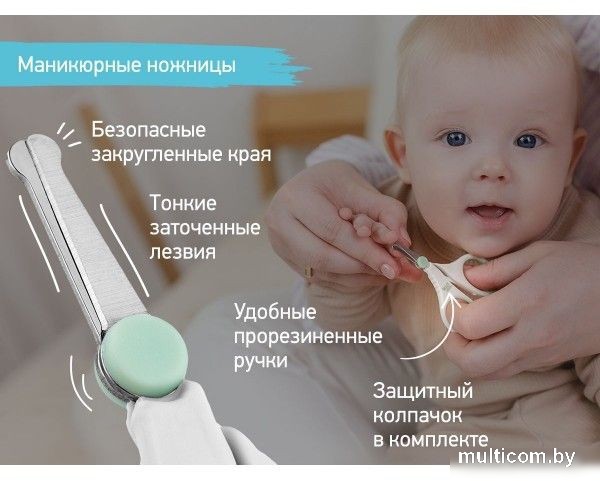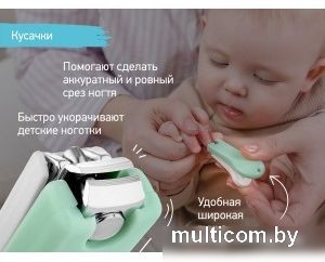 | Информация | ? Маникюрный набор для новорожденных и малышей 3в1 от ROXY-KIDS поможет полноценно ухаживать за первыми ноготочками малыша. ? Закругленные ножницы идеально подходят для мягких и маленьких ногтей малышей. ? Мелкозернистая пилочка устранит неровности ногтя после стрижки. ? Кусачки помогут выполнить аккуратный и ровный срез ногтя. ?? Подстригайте ноготки, когда они отрастают на 1 мм, чтобы малыш себя не поранил. |