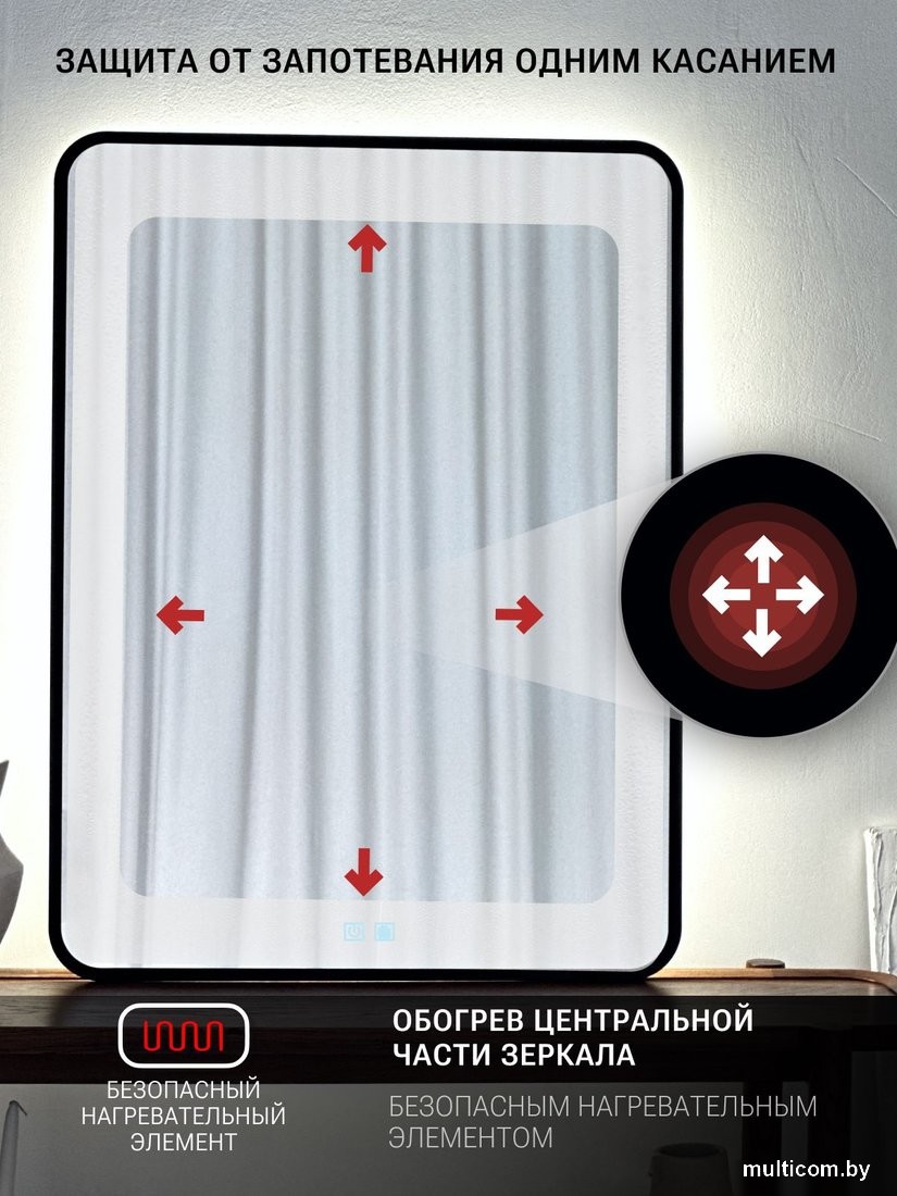 | Информация | - Интерьерное прямоугольное зеркало в стильной чёрной раме станет идеальным дополнением для вашего дома. Этот подвесной аксессуар отлично впишется в ванную комнату, прихожую, коридор или гостиную, создавая атмосферу уюта и света. - Зеркало прекрасно подходит для туалетного столика в спальне или детской, а также для парикмахерских и салонов красоты. Его декоративный дизайн освежит интерьер и добавит элегантности в любое помещение. - Подсветка с дневным белым светом (4000К) обеспечивает комфортное освещение, а сенсорное включение с плавным пуском позволяет легко управлять освещением одним касанием. Зеркало укомплектовано прочными крепежами и готово к самостоятельному монтажу. - Функция антизапотевания активируется вместе с подсветкой, что делает его особенно удобным для использования в ванной. Обогреватель, расположенный с обратной стороны, быстро нагревает поверхность на 10°-20° за 5-7 минут, предотвращая запотевание. - Матовая окантовка шириной 10 мм выполнена методом УФ-печати с использованием экологически чистых чернил, что гарантирует долговечность и устойчивость к влаге. Это зеркало станет не только функциональным, но и стильным элементом вашего интерьера. |