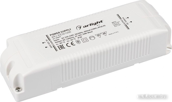 | Информация | Источник тока с гальванической развязкой для светильников и мощных светодиодов. Входное напряжение 220-240 VAC. Выходные параметры: 27-36 В, 1400 mА, 50 Вт. Встроенный PFC 0.95. Негерметичный пластиковый корпус IP 20. Габаритные размеры длина 155 мм, ширина 49 мм, высота 33 мм. Гарантийный срок 5 лет. |