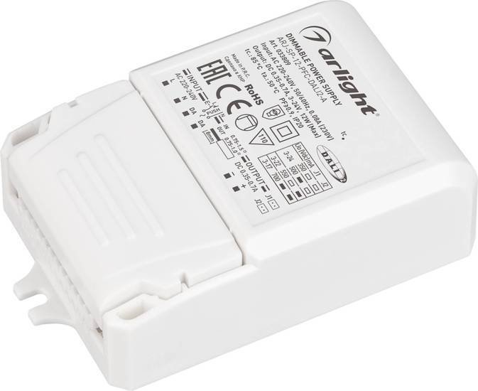 | Информация | Диммируемый токовый блок питания с управлением DALI 2.0 и функцией Push Dim с гальванической развязкой. Питание 220-240AC. Выход 3-24V - ток 350/500 mA, выход 3-22V - 550 mA, выход 3-17V - 700 mA макс. мощность 12W, PF 0,9. Размеры 88x52x25.5 мм. Гарантия 5 лет. |