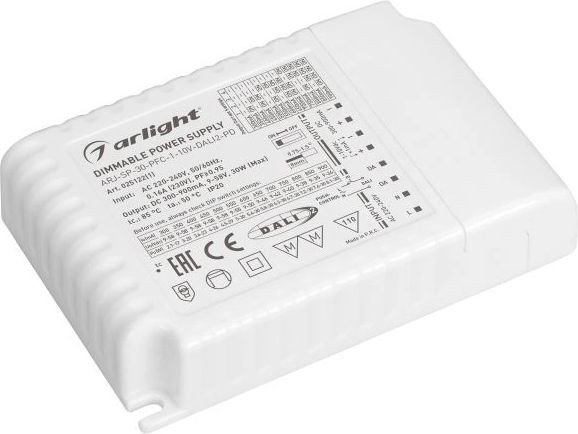 | Информация | Диммируемый источник тока по протоколу DALI 2.0 (диапазон 2-100%) и 1-10V (диапазон 2%-100%) с гальванической развязкой для светильников и мощных светодиодов. Входное напряжение 220-240 VAC. Выходные параметры: 9-58 В, 300-900 mА, 30 Вт. Встроенный PFC 0.9. Негерметичный пластиковый корпус IP 20. Габаритные размеры длина 103 мм, ширина 67 мм, высота 22 мм. Гарантийный срок 5 лет. |