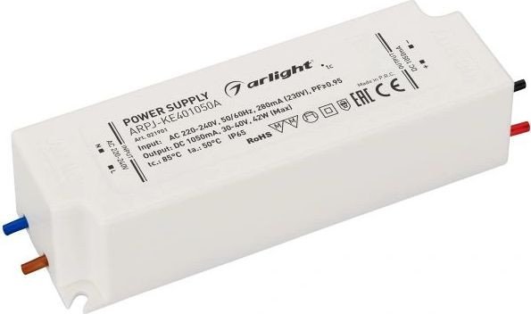 | Информация | Источник тока с гальванической развязкой для светильников и мощных светодиодов. Входное напряжение 220-240 VAC. Выходные параметры: 30-40 В, 1050 mА, 42 Вт. Встроенный PFC 0.95. Герметичный пластиковый корпус IP 65. Рабочая температура -30…+50C?. Габаритные размеры длина 122 мм, ширина 42.5 мм, высота 30 мм. Гарантийный срок 5 лет. |