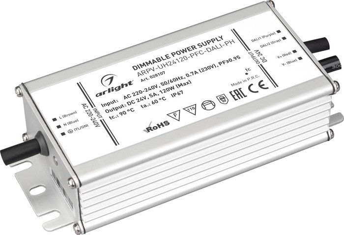 | Информация | Предельное входное напряжение min: 176 V; max: 305 V Потребляемый ток от сети AC230В max: 0,7 A Пусковой ток - 65 A Тип подключения - провода Допустимое кол-во на автомат защиты B16: 8 шт Допустимое кол-во на автомат защиты C16: 14 шт Допустимое кол-во на автомат защиты D16: 28 шт Выходной сигнал: PWM(ШИМ) CV Функция PushDim — внешняя кнопка (сухой контакт) |