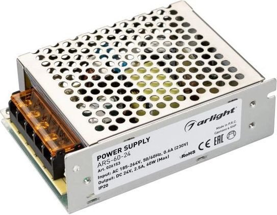| Информация | Источник напряжения с гальванической развязкой для светодиодных изделий. Входное напряжение 185-264 VAC. Выходные параметры: 24 В, 2,5 А, 60 Вт. Встроенный PFC 0,5. Негерметичный алюминиевый сетчатый корпус IP 20. Габаритные размеры длина 110 мм, ширина 77 мм, высота 35 мм. Гарантийный срок 2 года. |