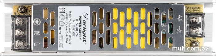 | Информация | Источник напряжения с гальванической развязкой для светодиодных изделий. Входное напряжение 176-264 VAC. Выходные параметры: 24 В, 2,5 А, 60 Вт. Встроенный PFC 0,5. Негерметичный алюминиевый сетчатый корпус IP 20. Габаритные размеры длина 156 мм, ширина 40 мм, высота 29 мм. Гарантийный срок 3 года. |