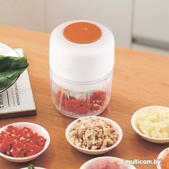| Информация | Измельчитель Kitfort КТ-3089 - прибор для быстрого измельчения мяса, твердого сыра, овощей, трав, чеснока и других продуктов. Чаша ёмкостью 170 мл изготовлена из прозрачного пластика, вы сможете наблюдать за процессом и контролировать степень измельчения. Тройной нож измельчает ингредиенты практически по всей высоте чаши, что экономит время приготовления. Лезвия изготовлены из высококачественной нержавеющей стали, скорость вращения ножей - 2100 об/мин. Салат или закуска будут готовы за несколько минут! Для управления измельчителем достаточно нажать на кнопку на верхней части моторного блока. Степень измельчения продуктов регулируется длительностью нажатия. Благодаря силиконовому кольцу на дне чаши, измельчитель меньше скользит по столу во время работы. Измельчитель КТ-3089 – портативный и работает от аккумулятора и заряжается от провода Mirco USB, который идёт в комплекте с прибором. Полной зарядки хватает на 20 циклов по 30 секунд, зарядка занимает 4,2 часа. Длина шнура – 0,5 м. |