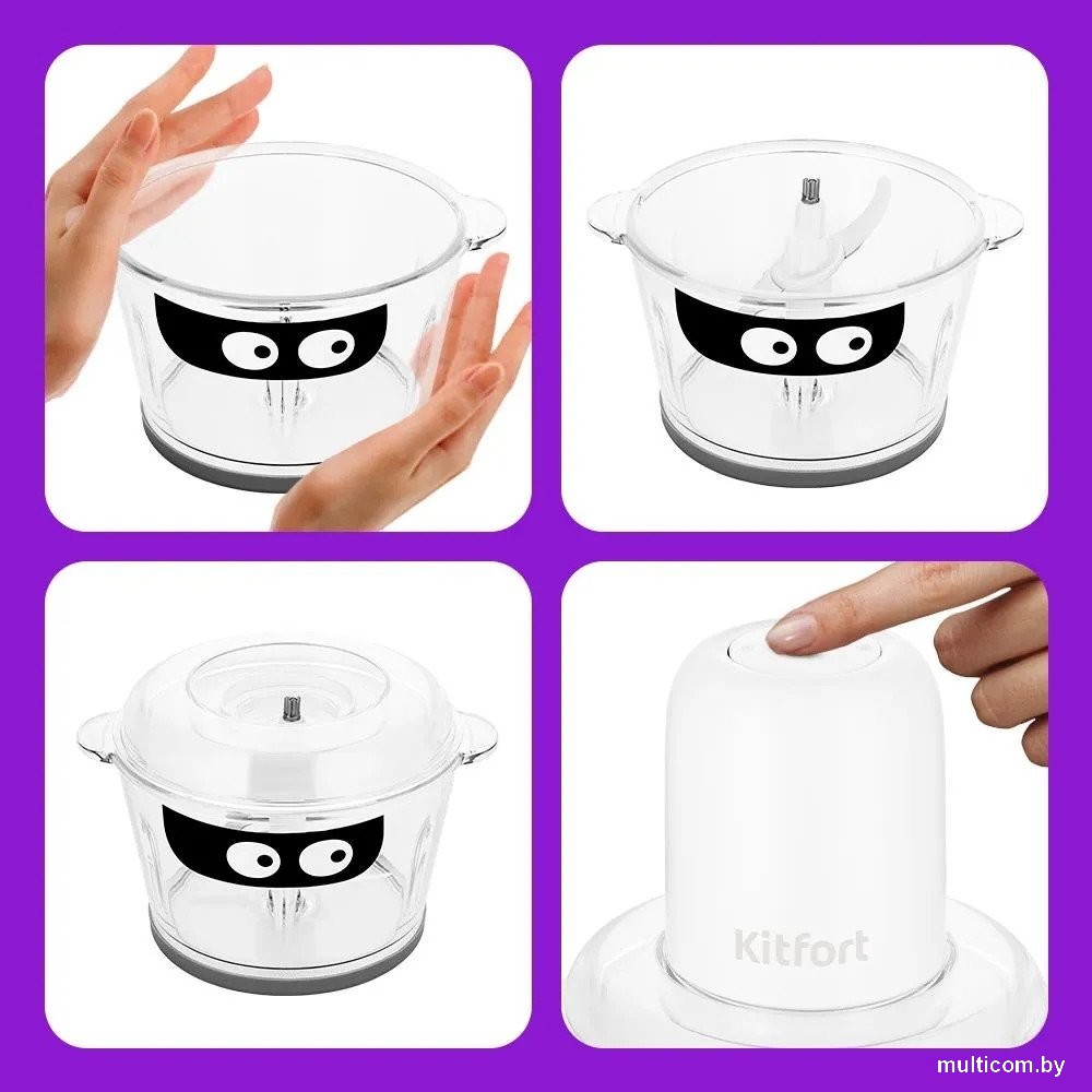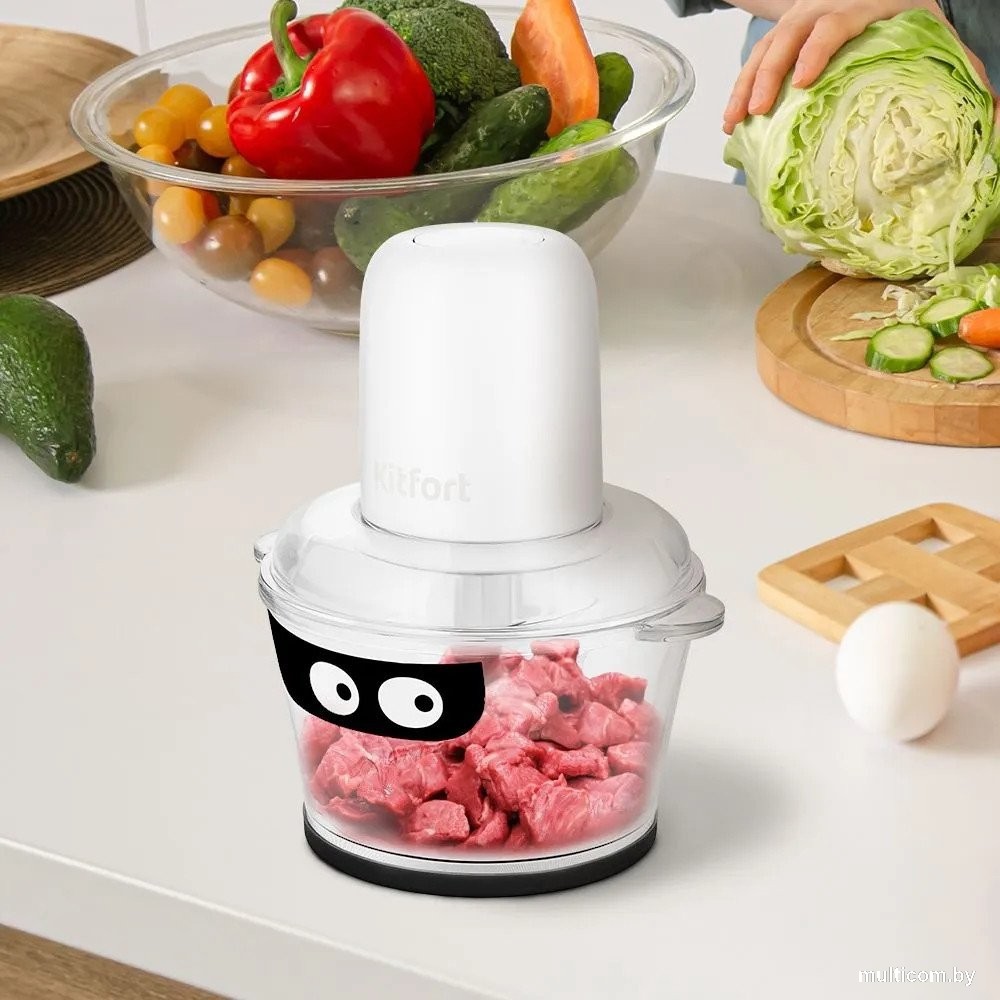 | Информация | Молниеносное измельчение! Измельчитель Kitfort КТ-3519 быстро измельчает мясо, твёрдый сыр, овощи, травы, чеснок, ягоды. Он исключает ваше участие в процессе измельчения, обеспечивая безопасность и экономию времени. Готовить блюда можно гораздо быстрее даже в больших объёмах. Работает максимально просто! Сборка измельчителя занимает всего пару минут. Управление прибором осуществляется с помощью двух кнопок, расположенных в верхней части моторного блока. Для обеспечения безопасности КТ-3519 может работать только с установленным моторным блоком. Двойной нож из нержавеющей стали Благодаря форме ножей и их взаимному расположению, измельчение продуктов проходит быстро и по всей высоте чаши, обеспечивая однородные измельчение всей массы продуктов. Блок ножей разборный, поэтому их легко и просто мыть. Безопасное хранение Для обеспечения безопасности в комплекте с измельчителем идут защитные кожухи для ножей. Всё под контролем! У измельчителя две скорости работы. Низкая скорость подходит для измельчения мягких продуктов, высокая скорость — для более твёрдых и плотных. Степень измельчения продуктов регулируется длительностью нажатия на кнопку выбранной скорости. Полностью разборная конструкция Конструкция измельчителя полностью разборная. Чаша стеклянная, её можно закрыть крышкой и использовать для хранения продуктов. В комплекте идёт лопатка, чтобы тщательно счищать стенки чаши. Легко отклеивающийся креативный стикер! С нашей техникой очень легко подружиться, потому что она не только лёгкая и функциональная, но и будто живая с весёлыми глазами. Никого не оставит равнодушным! В любой момент вы можете отклеить этот стикер без вреда для поверхности. |