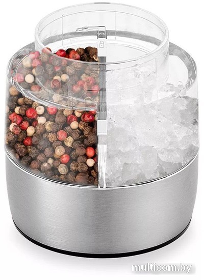 | Информация | ? Электрическая мельница для соли и перца КТ-6013-2 с регулировкой помола измельчает перец-горошек, соль и другие сухие специи, добавляя вкус вашим блюдам. ? Устройство имеет конструкцию "2 в 1" с двумя отделениями для измельчения разных видов специй, широкое горлышко для удобной засыпки специй и компактный размер, экономящий место на кухне. ? Регулируйте степень помола для каждого вида специй с помощью винта, а конические жернова из керамики обеспечивают долговечность и защиту от износа и коррозии. ? Мельница удобно лежит в руке, легко управляется двумя кнопками и работает от 6 батареек типа ААА (не включены в комплект). ?? Протирайте корпус влажной, а затем сухой тканью. Для удаления остатков специй переверните мельницу и нажмите на кнопку "S", затем на кнопку "P", после чего вытряхните остатки из емкости. |