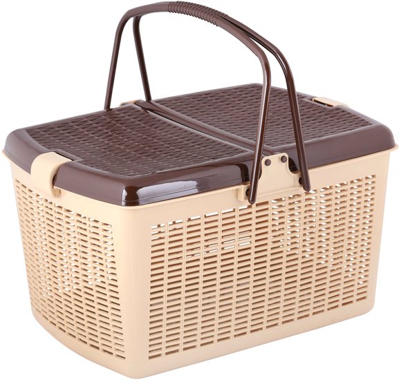 | Информация | Практичная и вместительная корзина предназначена для переноски различных вещей и продуктов. Собираясь на пикник или в путешествие, Вы легко разместите все необходимое в этой корзине. Крышки на защелках защитят содержимое от высыпания, удобные ручки не выскальзывают из рук. Корзину можно также использовать для сбора и транспортировки грибов, овощей с огорода и даже продуктов из магазина. |