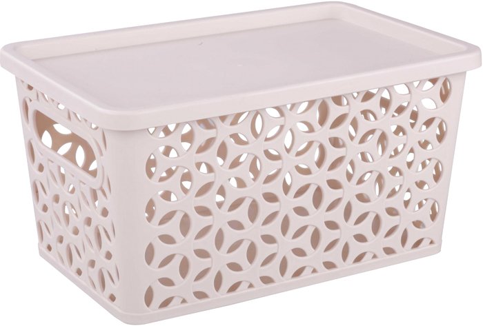 | Информация | Корзина предназначена для хранения мелочей в ванной, на кухне, на даче или в гараже. Данное изделие позволит хранить мелкие вещи, исключая возможность их потери. Корзина имеет крышку, которая защитит вещи от грязи и пыли, а для удобства переноски данный продукт оснащен двумя ручками. Стенки корзины имитированы под плетение узором, за счет этого обеспечивается естественная вентиляция. Элегантный выдержанный дизайн корзины «Мираж» позволит органично вписаться в ваш интерьер и стать его элементом. |