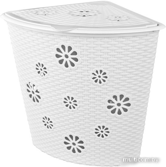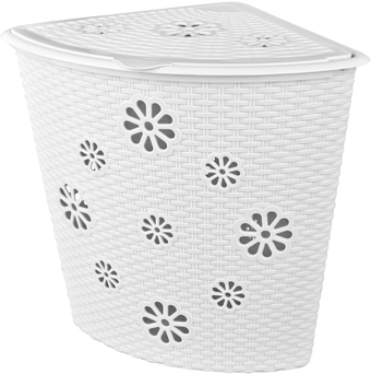 | Информация | Угловая корзина изготовлена из прочного пластика и отлично подойдет для хранения белья перед стиркой. Данное изделие оснащено крышкой, что поможет скрыть содержимое корзины. Стенки корзины имитированы под плетение с небольшими отверстиями в форме цветов, которые создают идеальные условия для проветривания. Удобная и компактная корзина прекрасно впишется в интерьер любой ванной комнаты. |
