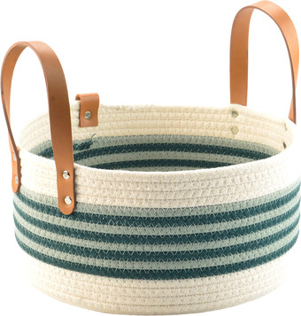 | Информация | Корзина Helly — прекрасный вариант для хранения различных предметов. Благодаря стильному дизайну такой контейнер отлично вписывается в современный интерьер гостиной, спальни или прихожей. Изделие выполнено из хлопковой нити с добавлением полиэстера, что гарантирует ему прочность, устойчивость к истиранию и привлекательный вид на протяжении всего срока службы. Изюминку корзине придают плетеный корпус и ручки из полиуретана, которые также обеспечивают удобную переноску. Длина ручек: 11 см. Для удаления загрязнений можно использовать мягкую щетку или губку с мыльным раствором воды. Допускается ручная стирка. |