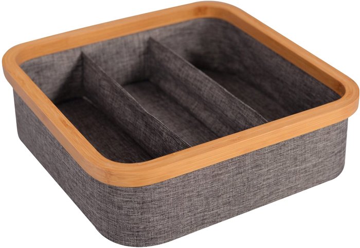 | Информация | Предназначен для хранения малогабаритных вещей, таких как чулочно-носочные изделия, нижнее белье, изделия для рукоделия, кухонные принадлежности, косметика, ремни, а также других предметов домашнего обихода и аксессуаров. Органайзер поможет организовать пространство. Положите его в выдвижной ящик шкафа, комода, тумбы или поставьте на полку или стол и нужные предметы всегда будут под рукой. Наличие трех отделений позволит содержать нужные мелочи в порядке. |